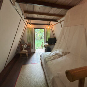 Plongez-vous dans l’ambiance sereine d’une escapade dans la jungle en résidant dans les limites confortables de notre A-Frame Tree House. Entourée d’une verdure luxuriante, la symphonie de la nature devient votre bande-son quotidienne, offrant une retraite loin de l’agitation de la vie quotidienne. Avec un peu de chance, vous pourrez même assister aux pitreries animées des singes, aux gambades ludiques des écureuils et à d’autres délicieuses surprises qui feront de votre séjour une expérience naturelle vraiment inoubliable.